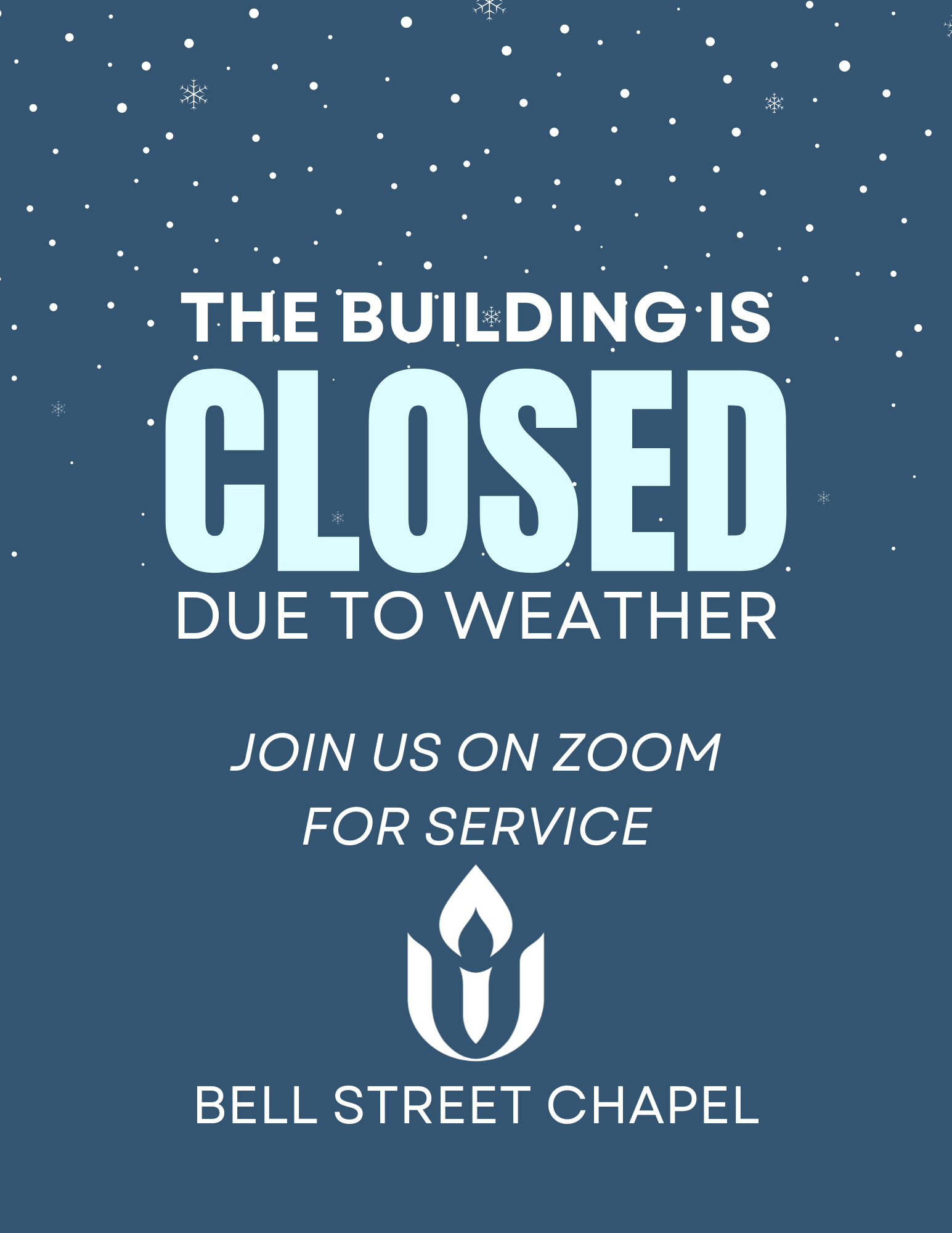 Bell Street Chapel will conduct this Sunday’s semi-annual meeting online-only via our Zoom account: https://bit.ly/BellStreetZoom (See our newsletter for full Zoom info.)